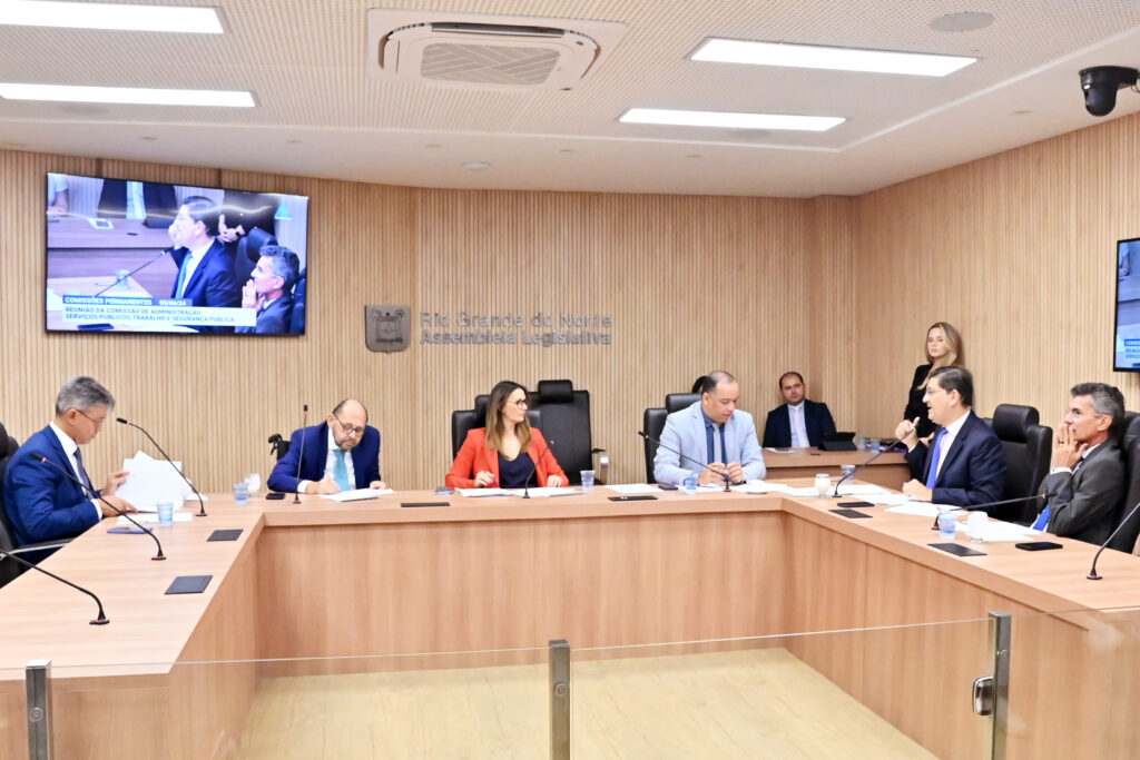 Os membros da Comissão de Administração, Serviços Públicos, Trabalho e Segurança Pública da Assembleia Legislativa do Rio Grande do Norte reuniram-se nesta quarta-feira (5). Na ocasião, os deputados Gustavo Carvalho (PSDB), Coronel Azevedo (PL), Francisco do PT, Isolda Dantas (PT), Luiz Eduardo (SDD), Divaneide Basílio (PT), Taveira Jr. (União) e Cristiane Dantas (SDD), que preside a Comissão, receberam o secretário estadual de administração Pedro Lopes de Araújo.