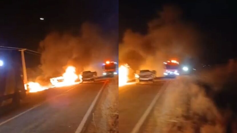 Um acidente de trânsito envolvendo três veículos foi registrado por volta das 19h desta terça-feira 23 na RN-288, nas proximidades da Fazenda São Bernardo, no trecho entre os municípios de Caicó e São José do Seridó, no Seridó potiguar. A colisão frontal resultou no incêndio de dois dos veículos logo após o impacto.