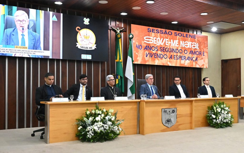 O Legislativo Potiguar realizou sessão solene, na tarde desta segunda-feira (1), para celebrar os 40 anos de implantação do movimento católico “Segue-me” da Arquidiocese de Natal. A homenagem, proposta pelo mandato do deputado estadual Tomba Farias (PL), contou com a participação do deputado Luiz Eduardo (SDD), de autoridades da Câmara Municipal de Natal e da Ordem dos Advogados do RN, de coordenadores e diretores do “Segue-me” e ainda do Arcebispo metropolitano de Natal, Dom João Santos Cardoso.