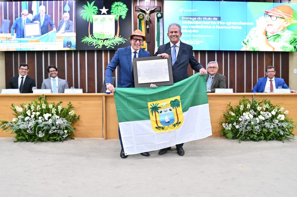 “Estamos aqui para homenagear uma pessoa que, há 29 anos, faz o Brasil inteiro rir com o melhor do humor nordestino. Com orgulho, concedemos o título de cidadão Norte-Rio-Grandense, aprovado à unanimidade por esta Casa Legislativa, a Rodrigo Vieira Emerenciano, conhecido popularmente como Mução — um nome que é sinônimo de alegria, criatividade e generosidade”, iniciou.