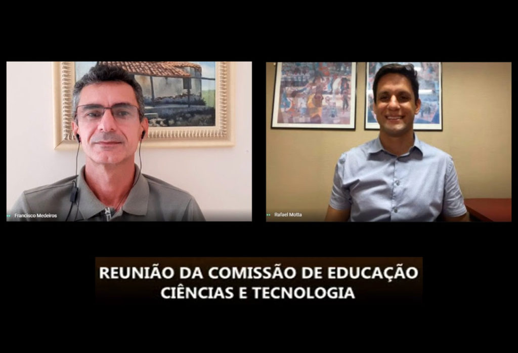 O presidente da Comissão de Educação Ciência e Tecnologia (CECT) da Assembleia Legislativa do Rio Grande do Norte, deputado Francisco do PT, realizou uma reunião de trabalho, por videoconferência, nesta sexta-feira (19), com o deputado federal Rafael Motta (PSB), membro da Comissão de Educação da Câmara dos Deputados e líder da bancada federal do Rio Grande do Norte em Brasília. O objetivo da reunião virtual foi apresentar um ofício, fruto de uma audiência pública em formato digital, realizada pela CECT na última quinta-feira (18), onde foram debatidos pontos considerados importantes sobre a aprovação da PEC 15/2015, que trata do novo Fundo de Manutenção e Desenvolvimento da Educação Básica e de Valorização dos Profissionais da Educação (Fundeb).