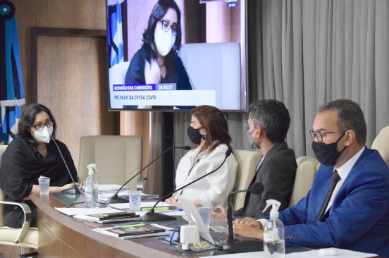 Durante a reunião desta quinta-feira, o deputado Kelps Lima, o deputado relator Francisco do PT e os deputados George Soares (PL) e Getúlio Rêgo (DEM) ouviram os depoimentos de três testemunhas sobre a contratação de organização social para gestão e operacionalização de leitos de UTI covid nos hospitais João Machado e Alfredo Mesquita Filho.