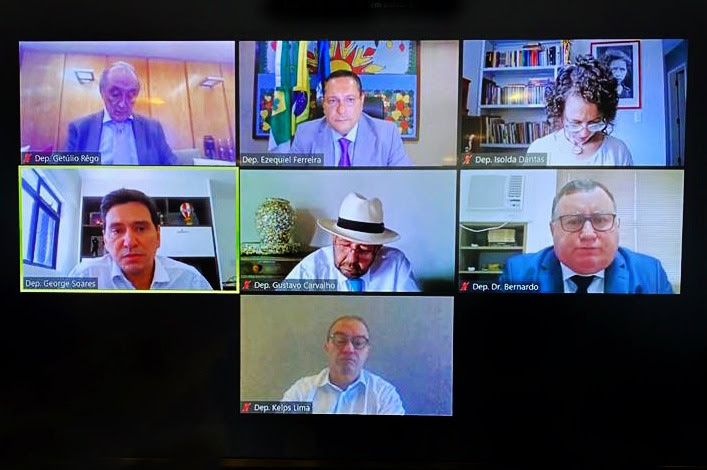 Participaram da reunião de líderes a deputada Isolda Dantas (PT) e os deputados Gustavo Carvalho (PSDB), George Soares (PL), Getúlio Rêgo (DEM), Kelps Lima (SDD), Dr. Bernardo (Avante) e o presidente Ezequiel Ferreira (PSDB) que debateram sobre os projetos e ações do legislativo no enfrentamento à Covid-19.