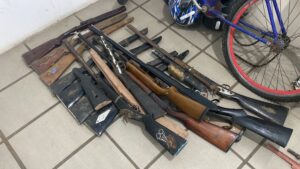 No local, a Companhia Independente de Operações e Patrulhamento Rural (Ciopar) localizou várias espingardas e materiais utilizados na fabricação e no conserto de armas. De acordo com a Polícia Civil, a maior parte das armas apreendidas era de espingardas de caça, mas também há suspeita de que o homem trabalharia para membros de facções criminosas.