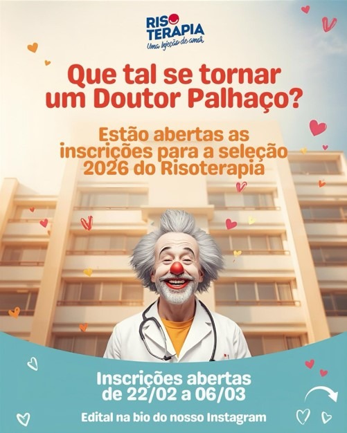 A formação dos selecionados ocorrerá entre os dias 28 de março e 20 de junho de 2026. Ao final do curso, os concluintes receberão certificado com carga horária de 40 horas. Durante o processo formativo, os participantes terão acesso a conteúdos voltados à risoterapia, técnicas de abordagem hospitalar e práticas de humanização, preparando-os para atuar de maneira ética e responsável.