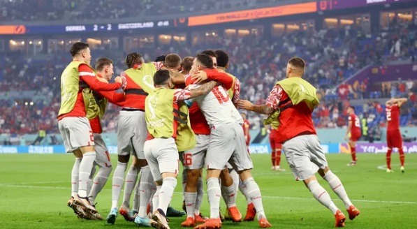 Teve golaço, teve virada dupla, teve tensão, teve provocação, quase teve briga. E teve festa para um lado e tristeza para outro. Em jogaço nesta sexta-feira, no estádio 974, a Suíça venceu a Sérvia por 3 a 2 e garantiu classificação às oitavas de final da Copa do Mundo como segunda colocada no Grupo G, atrás do Brasil no saldo de gols. Os suíços agora pegam Portugal no mata-mata. Os gols da vitória foram marcados por Shaqiri, Embolo e Freuler. Mitrovic e Vlahovic fizeram para os sérvios.